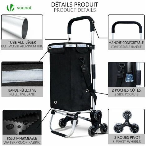 VOUNOT Folding Shopping Trolley On 6 Wheels, Aluminium Lightweight Shopping Cart With Insulated Cooling Bag, 50L, Black -Vonshef shop 36257736 5