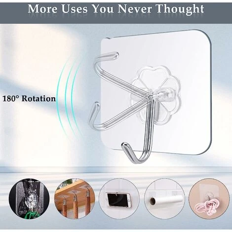 【High Quality】These self-adhesive hooks are made of PVC plastic and 304 stainless steel, which are waterproof, moisture-proof and heat; the adhesive hooks have sufficient durability, firmness and stability and are safe to use.