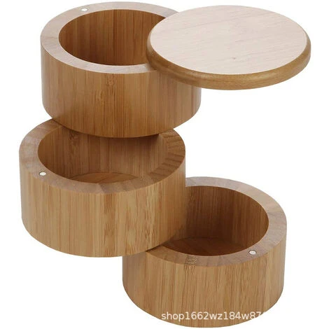 100% bamboo round Salt Box is perfect in its simple and warm color, this making it an aesthetically pleasing and convenient way to keep salt and other seasonings handy in the kitchen